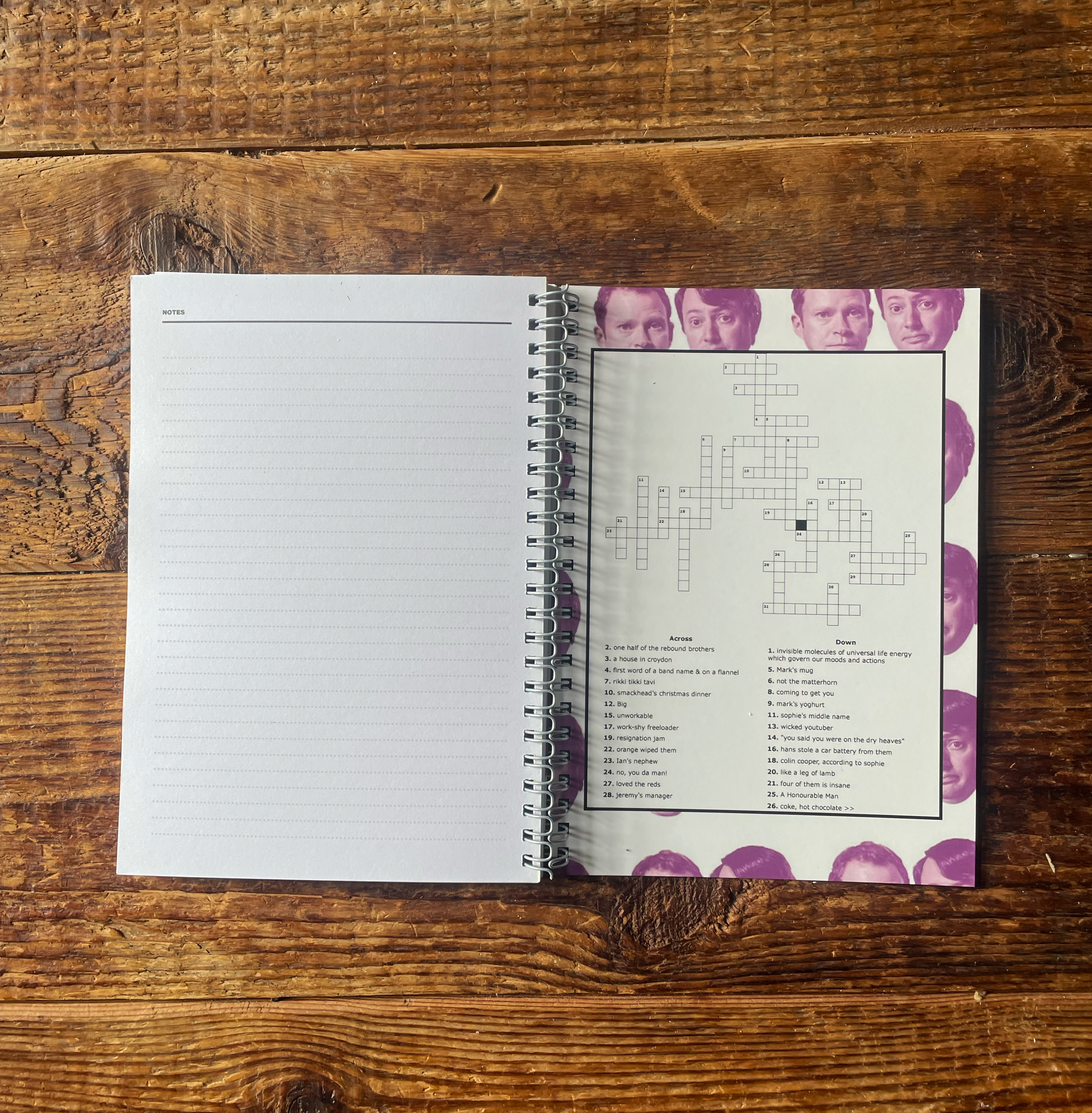 Spring bound notebook printed on high quality card and paper with a matt finish - A5 size. Includes a fun El Dude Crossword on the back page!